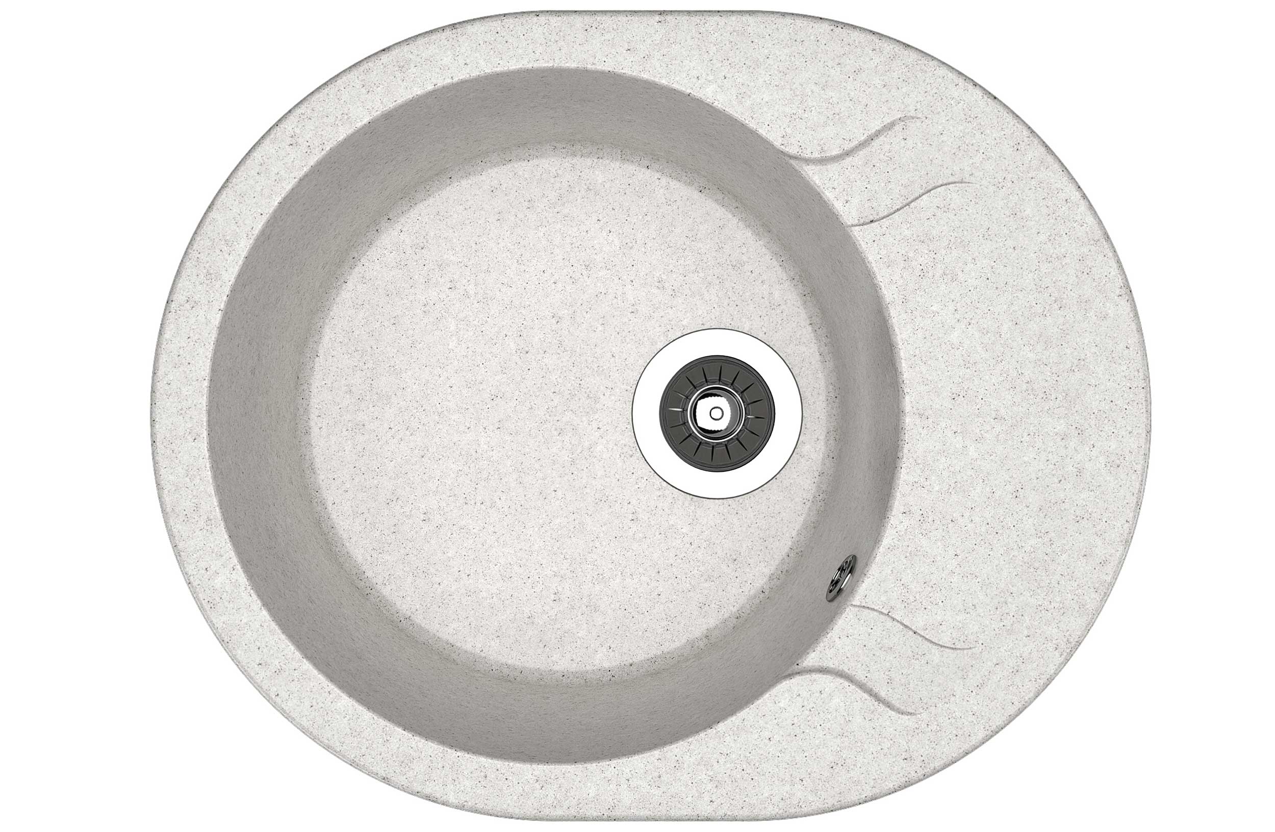 Мойка имеет овальную форму и оптимальные размеры 58 × 47 × 21,7 см, которые делают её идеальной для кухонь с ограниченным пространством, при этом внутренняя чаша остаётся достаточно вместительной для повседневных задач. Глубина около 20 см позволяет легко мыть крупную посуду, кастрюли и противни.