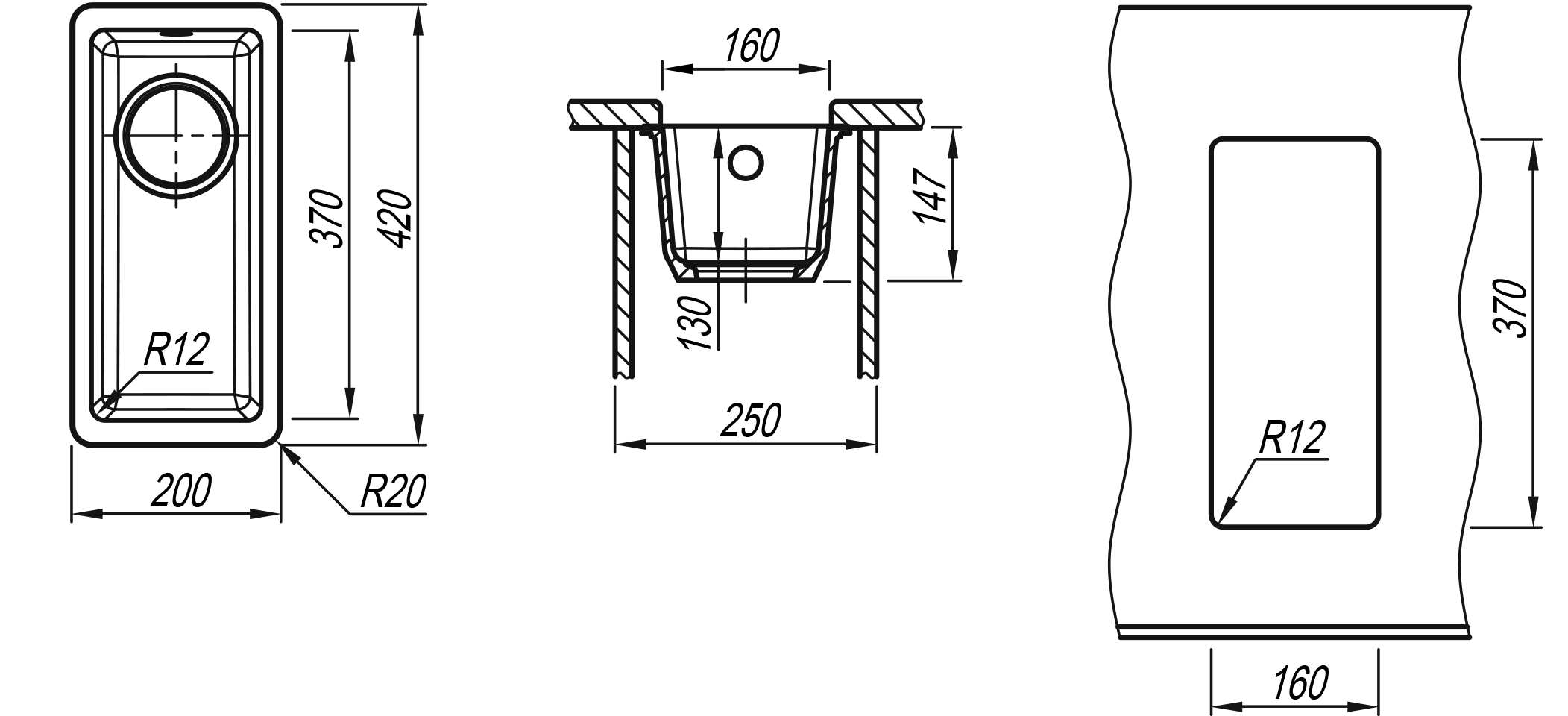 Размер чаши 160х380мм